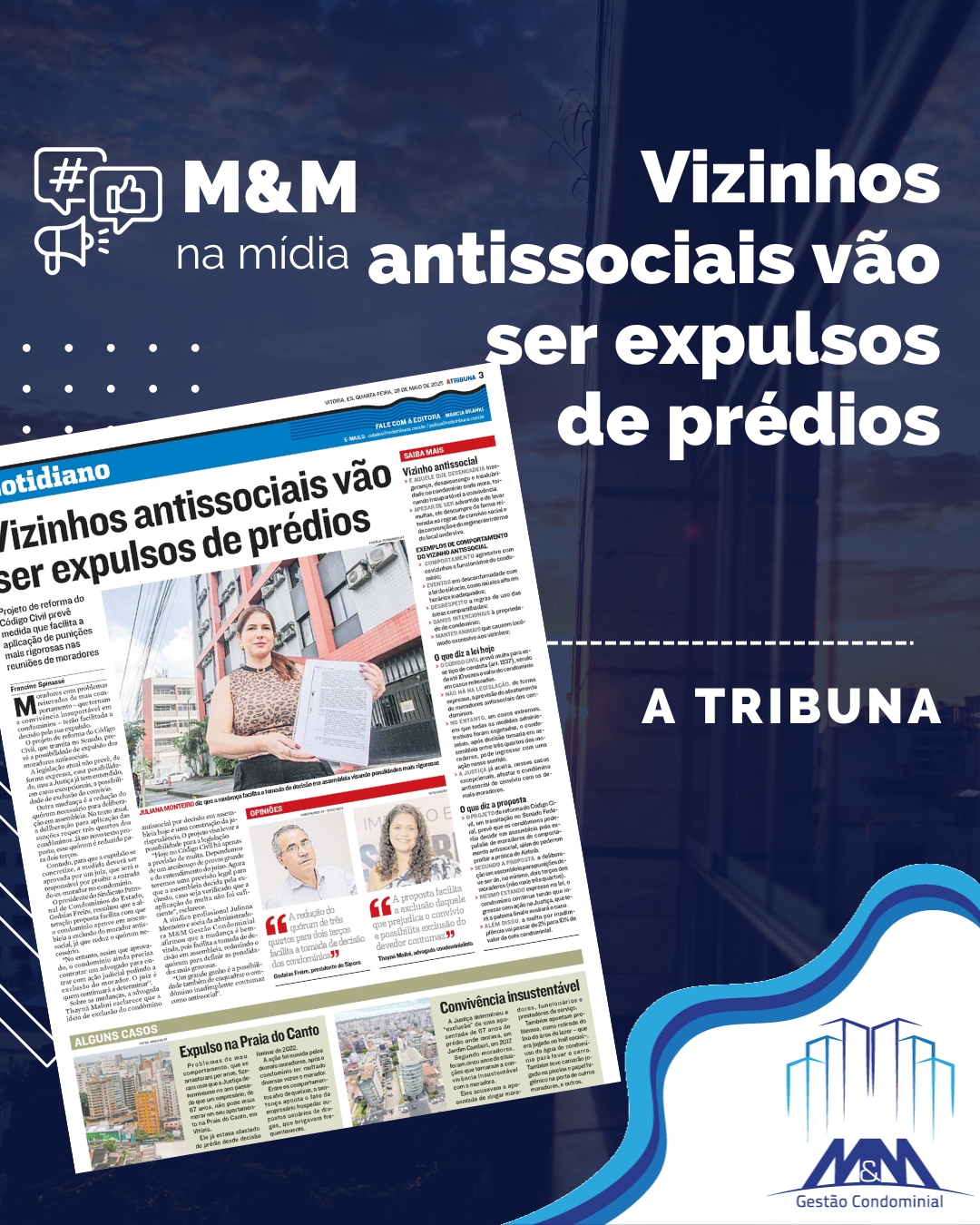 A M&M oferece uma administração moderna, eficiente e transparente, que cuida do seu condomínio com responsabilidade e agilidade. 📊 Prestação de contas detalhada📞 Atendimento rápido